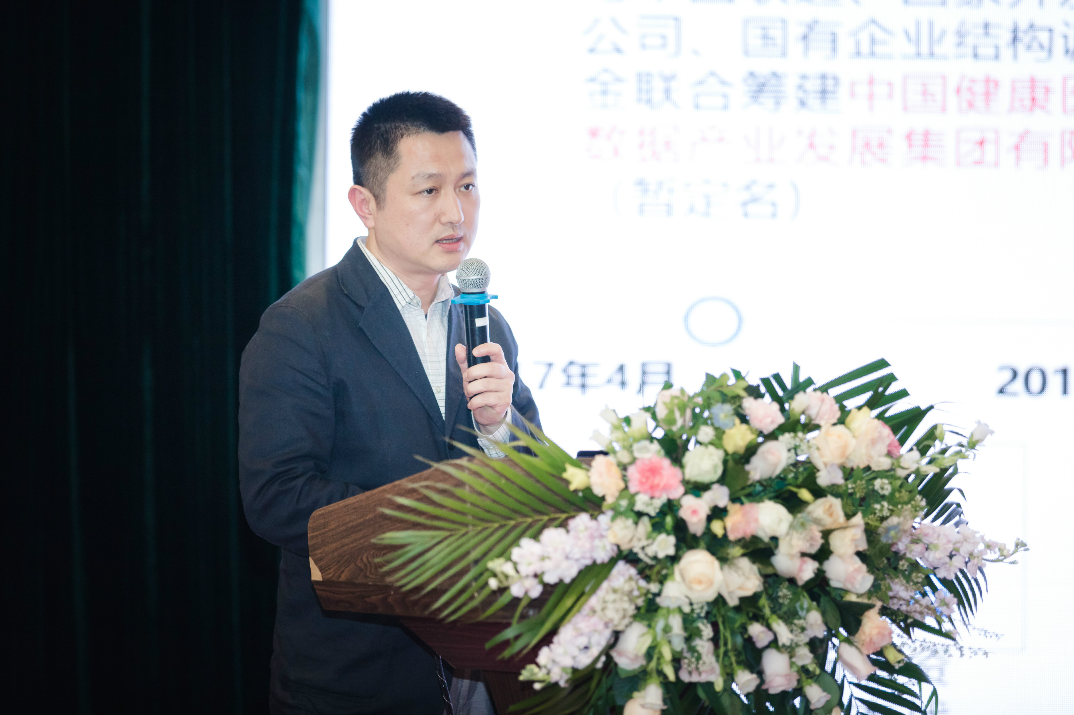 中电数据服务有限公司首席应用官肖辉先生,首先介绍中电数据的发展现状,主题是大数据、大健康、大发展,围绕惠民、惠企、惠政这一总体规划,数据安全这一核心,希望能通筹建国家公司、地方分公司以及与国外公司合作,促进产业的发展。