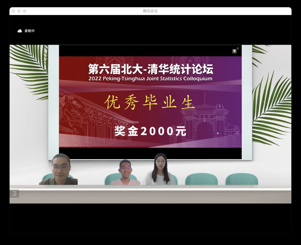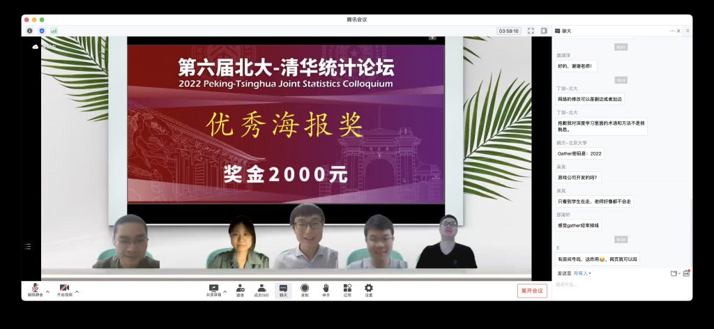 统计学研究中心18级博士研究生朱珂、19级博士研究生郑思捷,北京大学数学科学学院18级博士研究生王惠远、统计科学中心18级博士研究生邵凌轩获评“优秀海报奖”。