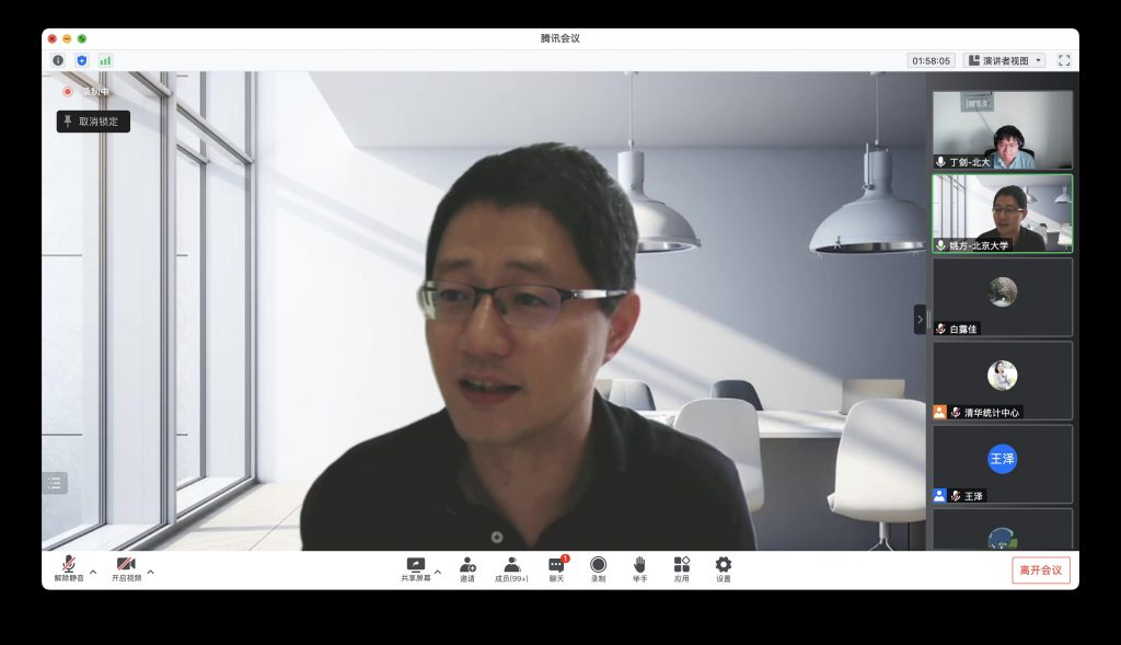 随着两校统计学科的发展和人才队伍的壮大,北大-清华统计论坛的参会者逐年增加,本届论坛累计共有两百余人参会,除清北两校师生外还受到了很多其他高校和业界的学者关注。在这个特殊时期,两校统计学科的师生通过线上平台“云见面”及交流,活动精彩依旧。拷贝漫画