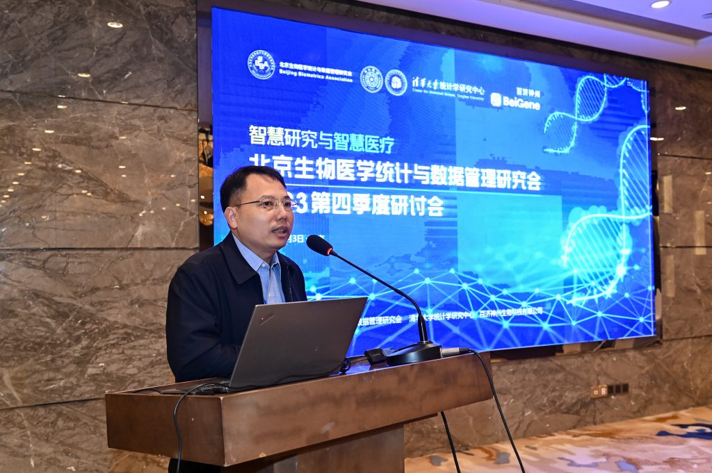 统计学研究中心和百济神州(北京)生物科技有限公司(以下简称百济神州)联合承办。会议由北京生物医学统计与数据管理研究会秘书长、百济神州统计编程高级总监李友主持,来自高校、医疗机构和医药科技行业等单位的多位专家及学者出席会议并参与研讨。
