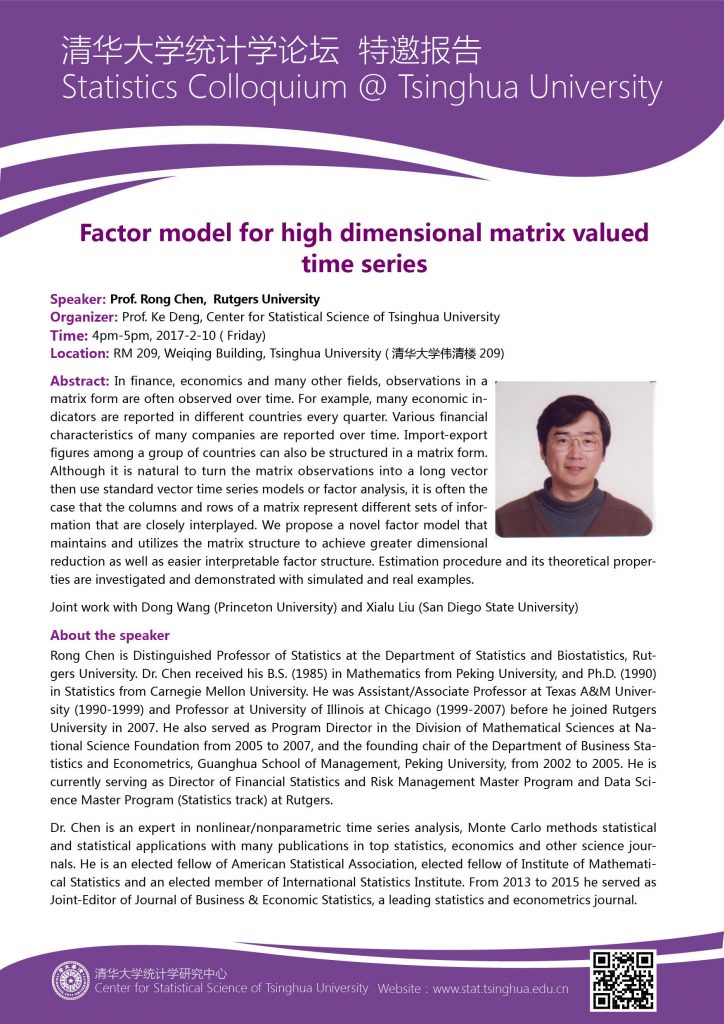 【统计学论坛】Factor model for high dimensional matrix valued time series