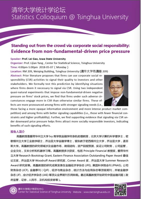 【统计学论坛】Standing out from the crowd via corporate social responsibility: Evidence from non-fundamental-driven price pressure