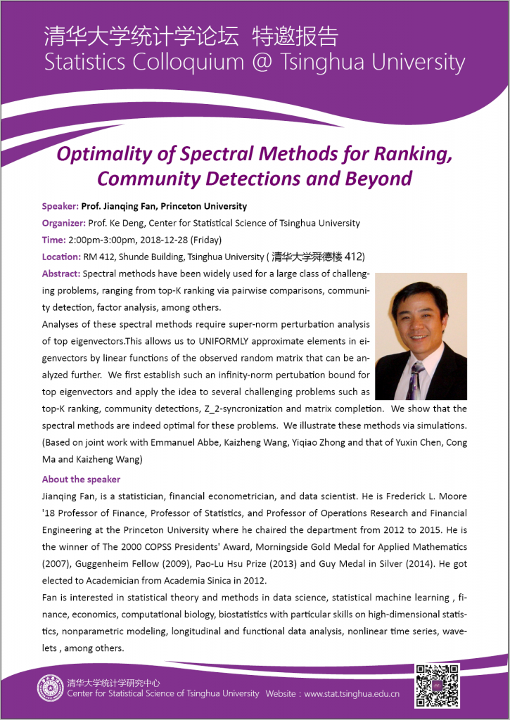 【统计学论坛】Optimality of Spectral Methods for Ranking, Community Detections and Beyond