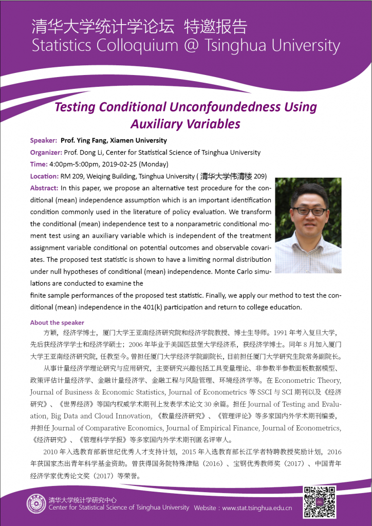 【统计学论坛】Testing Conditional Unconfoundedness Using Auxiliary Variables