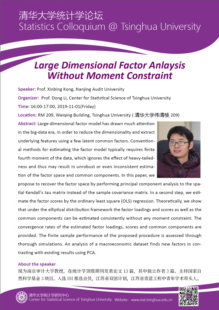 【统计学论坛】Large Dimensional Factor Anlaysis Without Moment Constraint