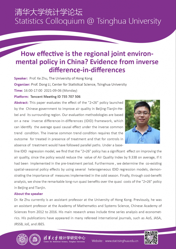 【统计学论坛】How effective is the regional joint environmental policy in China? Evidence from inverse difference-in-differences