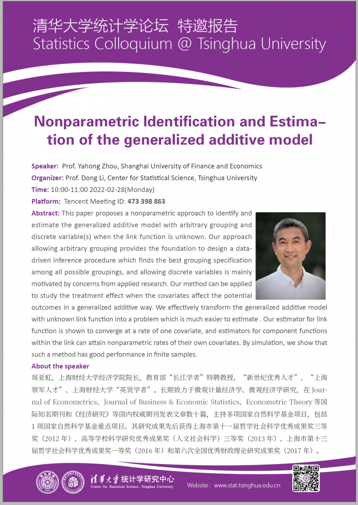 【统计学论坛】Nonparametric Identification and Estimation of the generalized additive model
