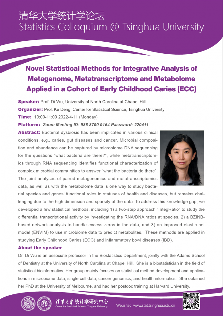 【统计学论坛】Novel Statistical Methods for Integrative Analysis of Metagenome, Metatranscriptome and Metabolome Applied in a Cohort of Early Childhood Caries (ECC)