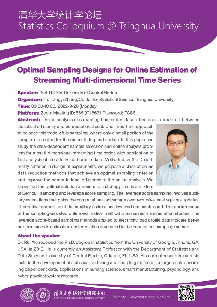 【统计学论坛】Optimal Sampling Designs for Online Estimation of Streaming Multi-dimensional Time Series