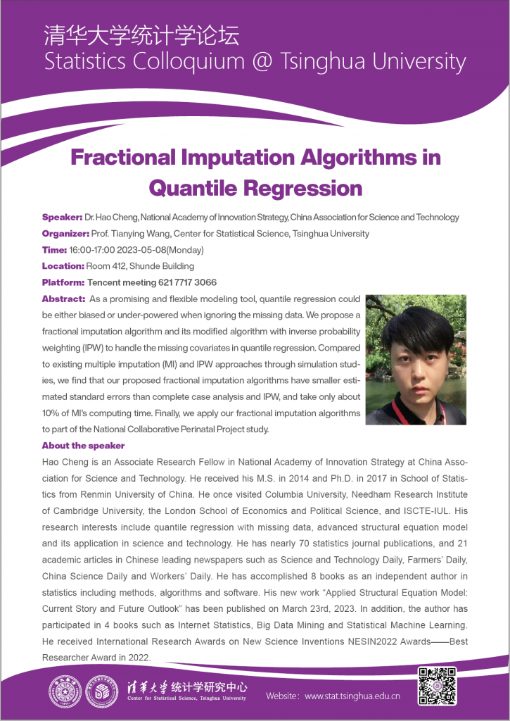 【统计学论坛】Fractional Imputation Algorithms in Quantile Regression
