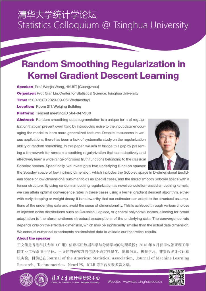 【统计学论坛】Random Smoothing Regularization in Kernel Gradient Descent Learning