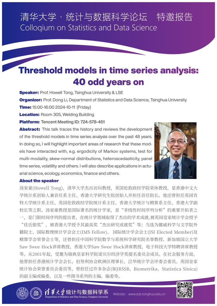 【统计与数据科学论坛】Threshold models in time series analysis:40 odd years on