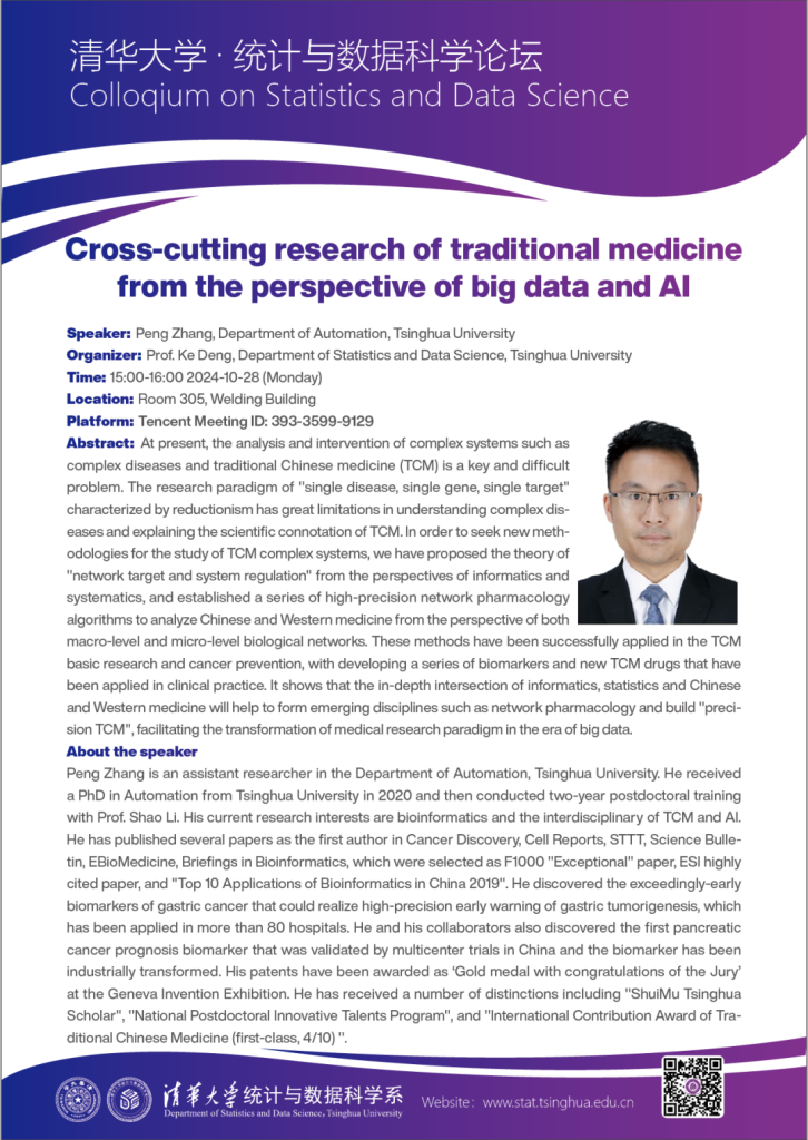 【统计与数据科学论坛】Cross-cutting research of traditional medicine from the perspective of big data and AI