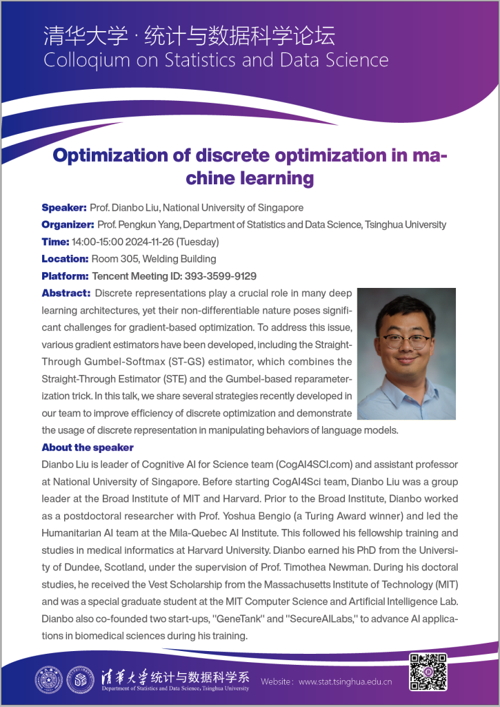 【统计与数据科学论坛】Optimization of discrete optimization in machine learning