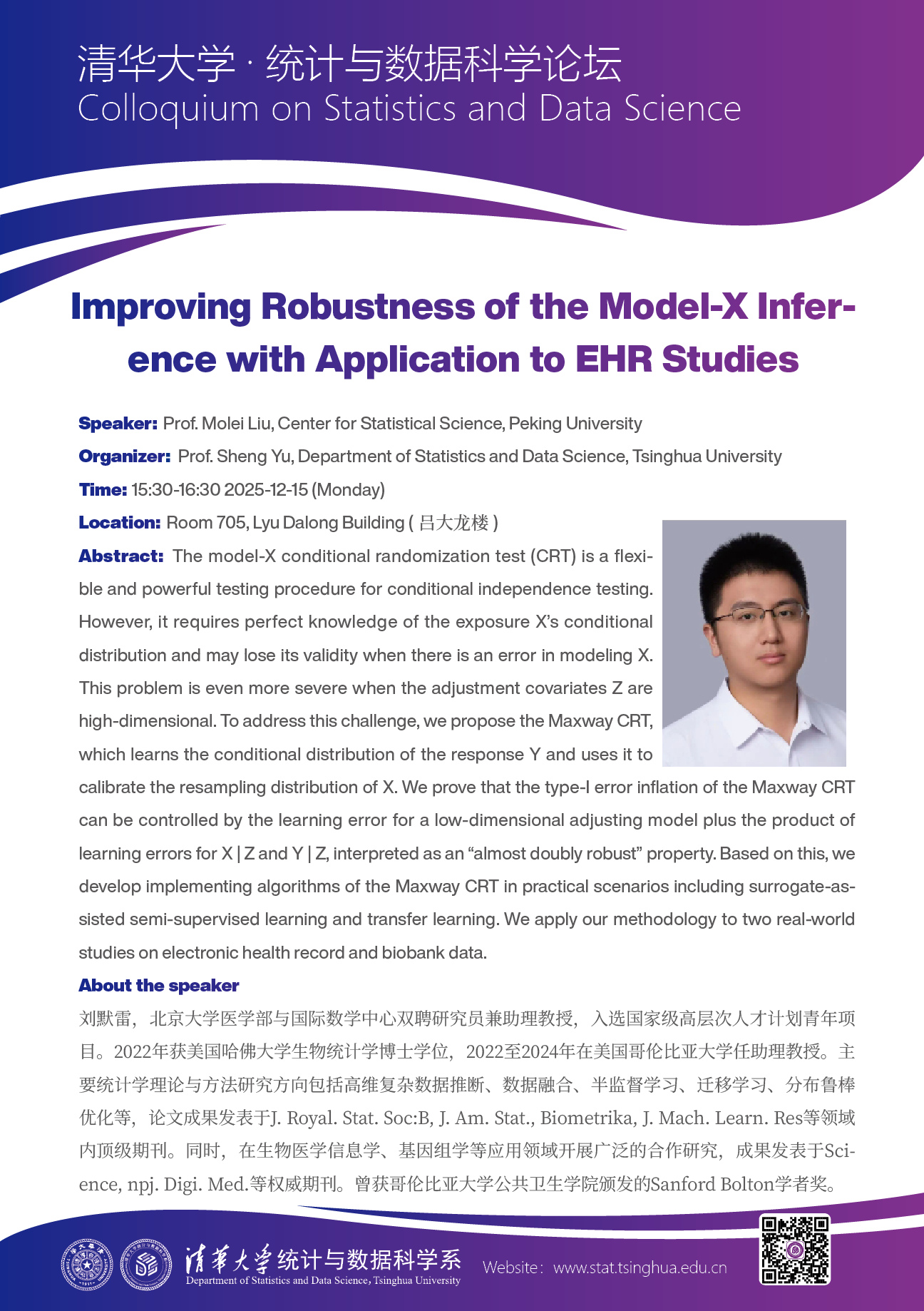 【统计与数据科学论坛】Improving Robustness of the Model-X Inference with Application to EHR Studies