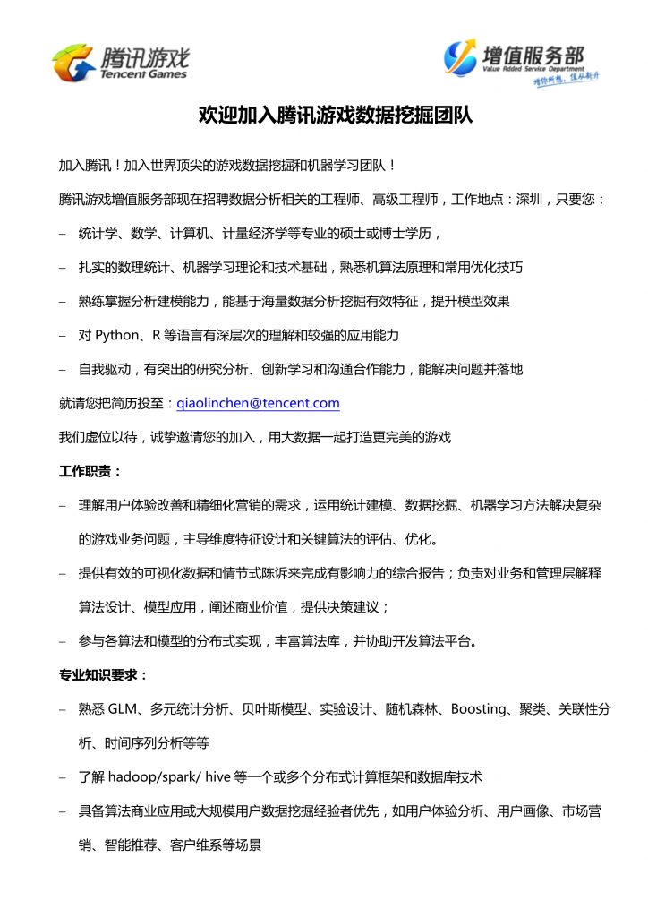 腾讯游戏数据挖掘团队