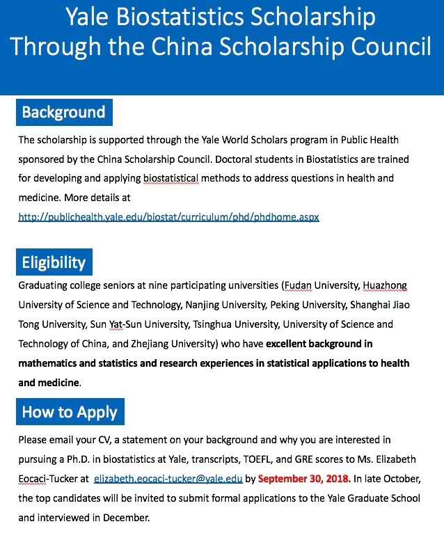 【招生信息】耶鲁大学生物统计系博士项目招生