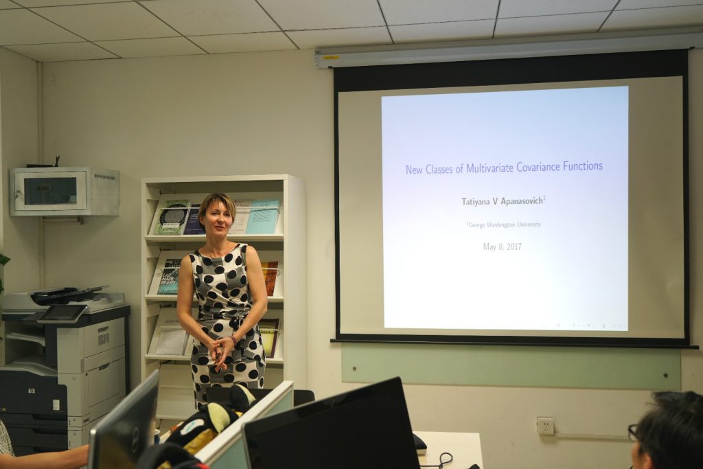 2017年5月8日,乔治华盛顿大学统计系副教授Tatiyana Apanasovich 访问我中心并做学术报告 New Classes of Multivariate Covariance Functions.