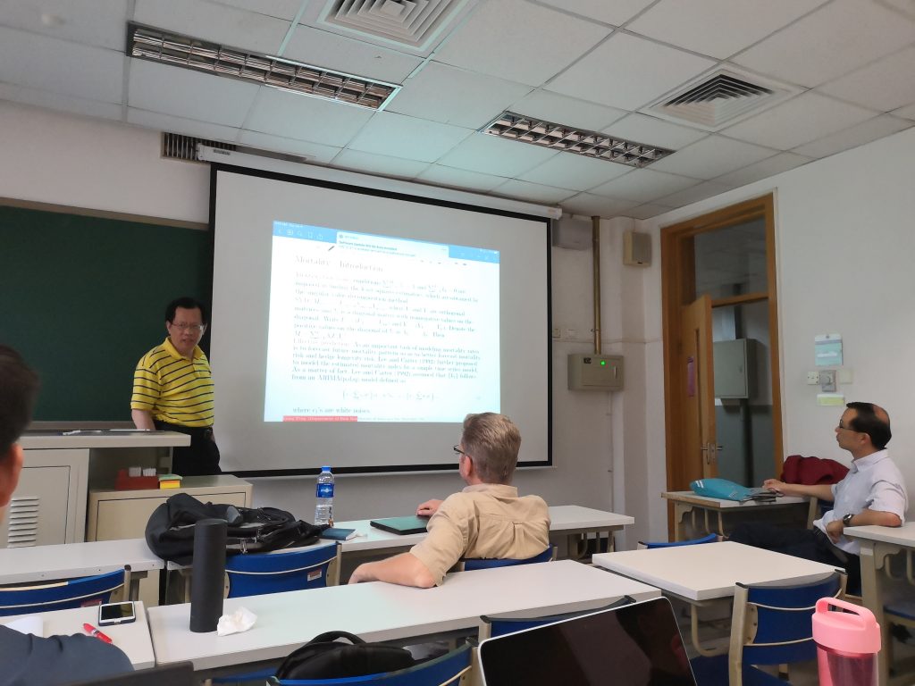 2019年6月4日,【统计学论坛】特邀报告在拷贝漫画 三教3213室成功举办。本次报告邀请到佐治亚大学彭亮教授。报告由拷贝漫画 统计学研究中心的助理教授吴未迟博士主持。本次报告的主题是“Statistical Inference for Mortality Model and Risk Allocation”。