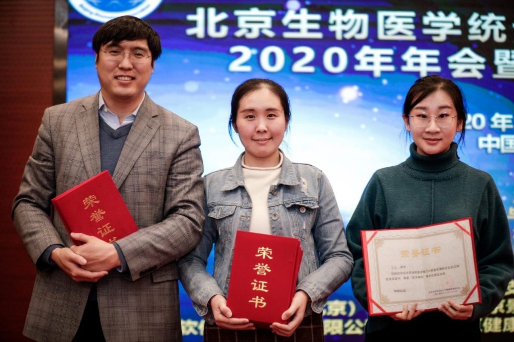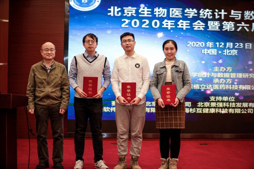 12月23日,北京生物医学统计与数据管理研究会2020年年会暨第六届学术研讨会在中关村创业大厦成功举办,来自国内外的相关专家学者与参会代表,就“突发公共卫生事件下临床数据的处理和统计应对”进行了深入的交流和探讨。会议同时为2020年度“百济神州”青年优秀论文奖获奖者颁奖。我中心17级博士研究生袁正荣获2020年“百济神州”青年论文奖二等奖并作报告、19级博士研究生宋爽荣获2020年度“百济神州”青年优秀论文奖。其中宋爽同学是继2019年获得二等奖之后,再次获得该奖项。
