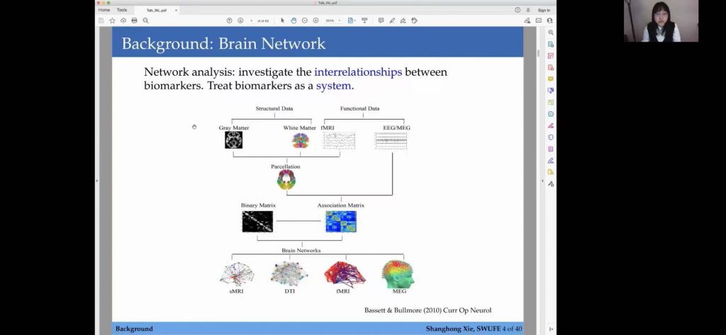 2021年11月1日,西南财经大学统计学院谢尚宏助理教授通过线上平台与我中心教员深入交流,并进行线上学术报告,报告的题目是Integrative Network Learning for Multi-modality Biomarker Data。