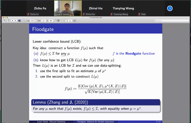 2021年11月15日,哈佛大学统计系Lucas Janson助理教授通过线上平台与我中心教员深入交流,并进行线上学术报告,报告的题目是Floodgate: inference for model-free variable importance。