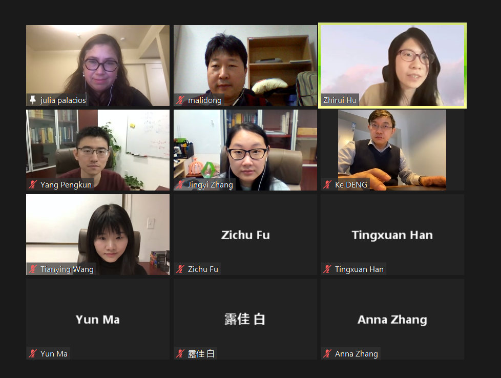 2021年11月29日,斯坦福大学助理教授通过线上平台与我中心教员深入交流,并进行线上学术报告,报告的题目是Distance-based Summaries and Modeling of Evolutionary Trees。