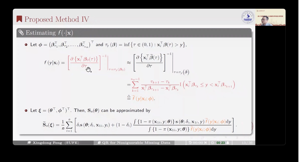 2022年3月21日,上海财经大学冯兴东教授通过线上平台与我中心教员交流,并进行线上学术报告,报告的题目是Quantile Regression for Nonignorable Missing Data with its Application of Analyzing Electronic Medical Records。