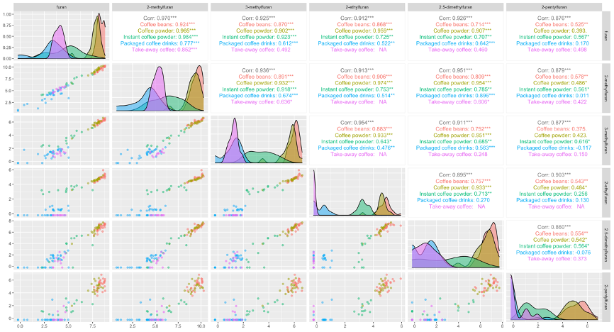统计咨询中心受国家食品安全风险评估中心(以下简称CFSA)周萍萍研究员委托,希望针对不同咖啡产品中呋喃(furan)及其衍生物的相关性分析问题给出具有优良统计学特性的解决方案。拷贝漫画