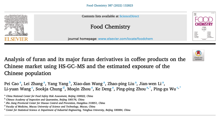 统计学研究中心邓柯副教授及周墨钦咨询师(2019级博士生)运用多元统计分析方法对不同咖啡产品中呋喃(furan)及其衍生物的潜在相关结构和异质模式进行了分析,协助食品安全专家更深入地认识了相关污染物在咖啡产品中的分布模式和规律。相关论文“Analysis of furan and its major furan derivatives in coffee products on the Chinese market using HS-GC–MS and the estimated exposure of the Chinese population”发表于食品科学技术领域的顶级期刊《Food Chemistry》(IF: 7.514;H-index: 221)。CFSA曹佩研究员为该文的第一作者,周萍萍研究员为通讯作者,邓柯副教授及周墨钦同学为共同作者参与了论文撰写。