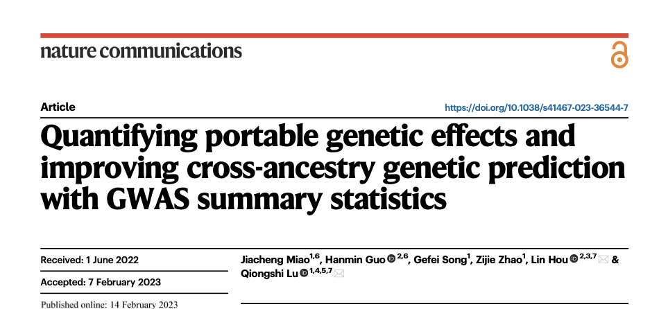 【学术成果】统计中心22届博士毕业生郭瀚民在Nature Communications发文提出基于贝叶斯统计的跨种族疾病风险预测算法
