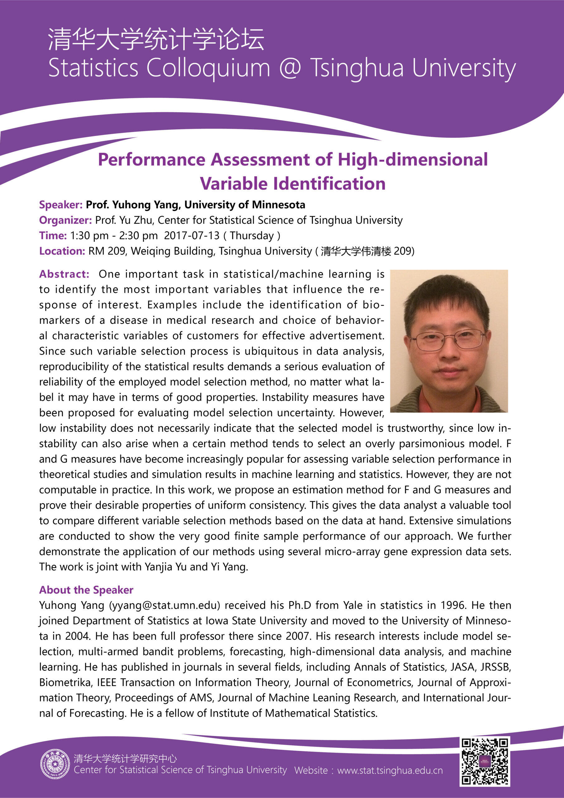 报告人:Yuhong Yang
