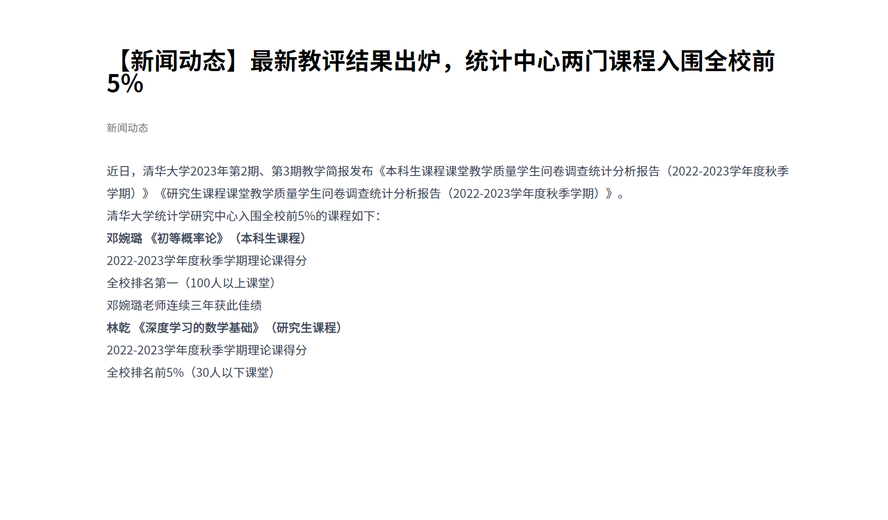 【拷贝漫画新闻 】最新教评结果出炉,统计中心两门课程入围全校前5%
